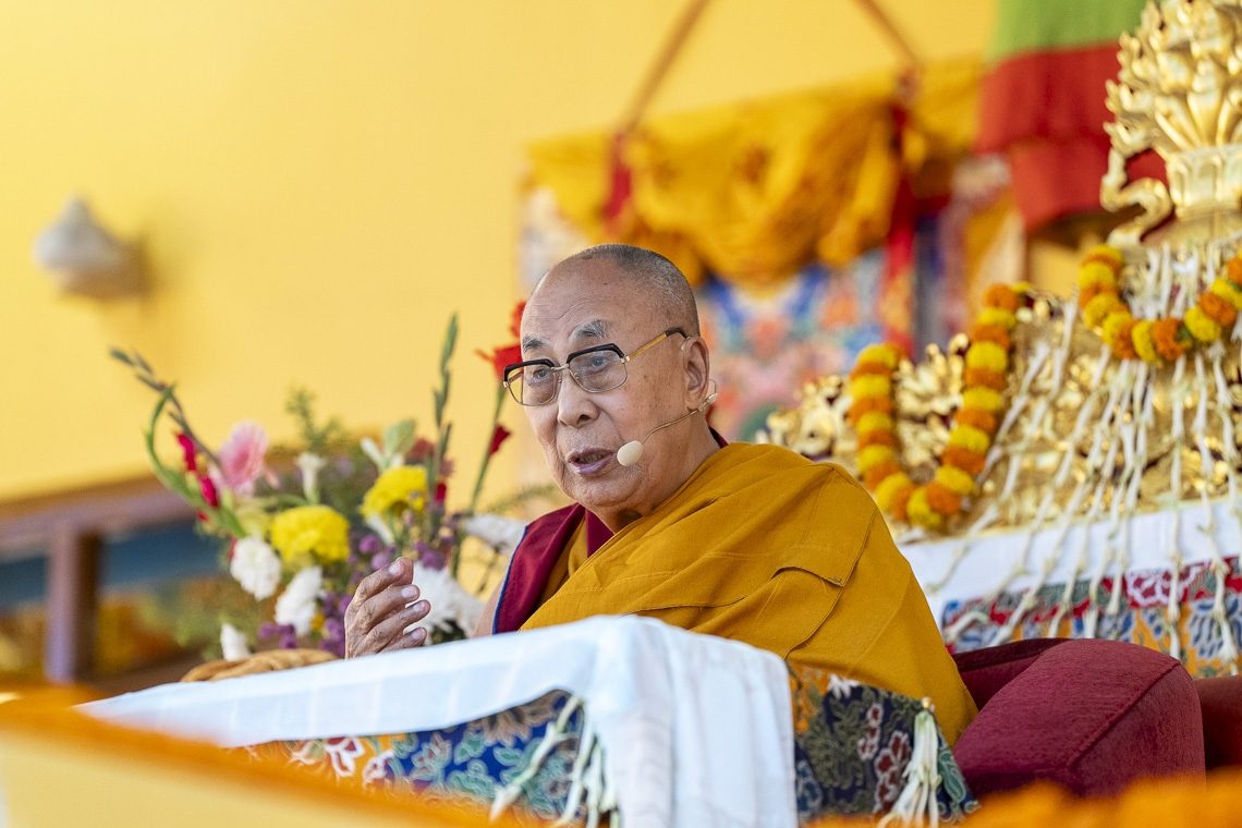 His Holiness the Dalai Lama giving a general talk on Buddhism at Sed-Gyued Monastery in Salugara, West Bengal, India on December 14, 2023. Photo by Tenzin Choejor